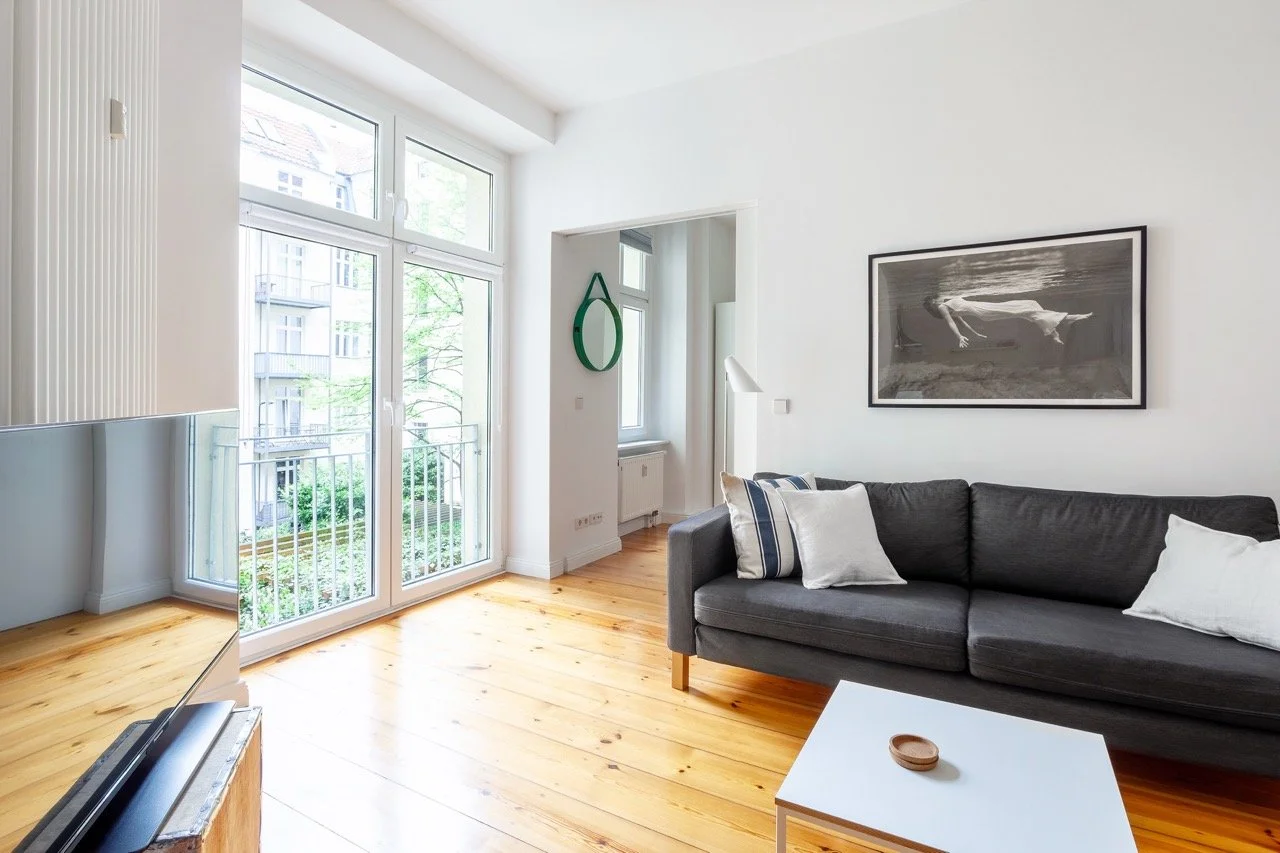Unsere 80qm-Wohnung (1 Schlafzimmer) im Neubau ist wertig und modern ausgestattet – unter anderem mit extra-schnellem Wlan, Smart-TV mit Netflix, Fußbodenheizung, großem Balkon und stilvollem Panoramafenster mit einer riesigen Fensterfront. Sie liegt mitten in einem der schönsten Altbauensembles Europas, dem Herzen des Prenzlauer Bergs.